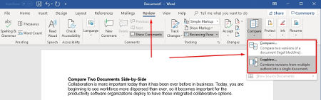 Collaboration is critical to the success of all businesses, but this often includes comparing documents side-by-side--something that is difficult if you’re not in the same physical location. If you want to compare two different versions of a document, and even merge it into one, you can use the Review tab at the top of Word’s document screen. This gives your employees even more opportunities to work together as effectively as possible.