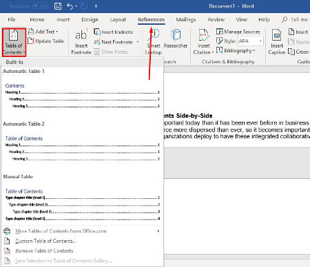 Office workers are often asked to build out reports, but they can be challenging to look at without a table of contents. If you have a little knowledge of Word, you can use it to build an easy table of contents in any paper or report. To do so, first make sure the headings and whatnot are all laid out in the proper order. Next, go to the References tab and click on Table of Contents. Choose the style you’d like to use from the options presented and the table of contents will be generated. You’ll have to edit them to your specific requirements, but this is easy enough.